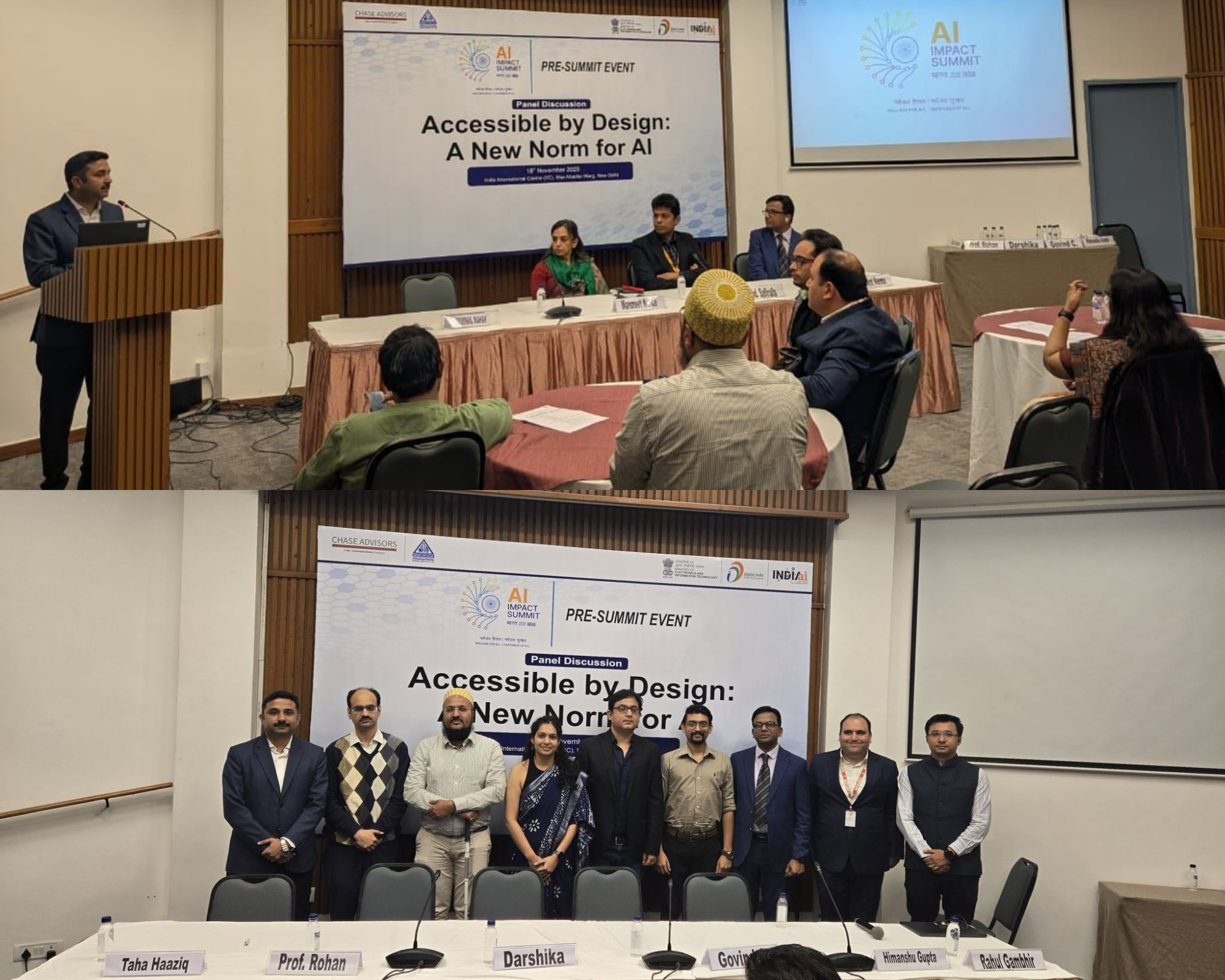 The session brought together senior leaders from government, academia, industry, and civil society to explore how accessibility can be integrated across the entire AI lifecycle – from design, development, and deployment. The session opened with welcome remarks from Kaushal Mahan, Senior Vice President, Chase Advisors and thematic address from Prashant Ranjan Verma, General Secretary, National Association for the Blind (NAB), Delhi. The session was honoured by presence of Shri Mohammed Y. Safirulla K, Director, IndiaAI Mission, MeitY for Special Address & Ms. Manmeet Kaur Nanda, Additional Secretary, DEPwD, Ministry of Social Justice & Empowerment who delivered Keynote Address. Thes esteemed speakers who participated in panel discussion included Taha Haaziq, Secretary, Office of the State Commissioner for PwDs, Government of Goa; Prof. Rohan Paul, Associate Professor, IIT Delhi; Rahul Gambhir, Chief Manager & Digital Accessibility Specialist, Union Bank of India; Govind Chandrani, Practice Head, Engineering Services & AI, HCLTech and Himanshu Gupta, Product Architect, Sarvam AI. The session was moderated by Darshika Gupta, Manager, Chase Advisors.